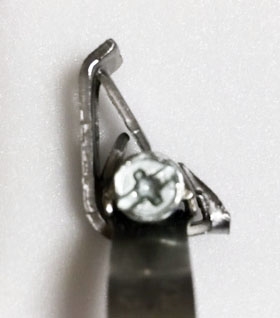 専用バンドはステンレス製です。このような垂直部分を含む型抜きフレームに専用バンドフレームを合わせる形状にする事によって金属の密度を上げフレーム剛性の向上、さらに軽量化も図っています。