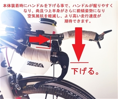 私のTTバイクのハンドルはフラットタイプでハンドルの高さはあまり高くならないのですが、それでも5センチは下がります。現状上がりが高いハンドルを使用している人は、上りの分だけハンドルは下がっていきます。10センチほどハンドルが下がる場合もあるのではないでしょうか?