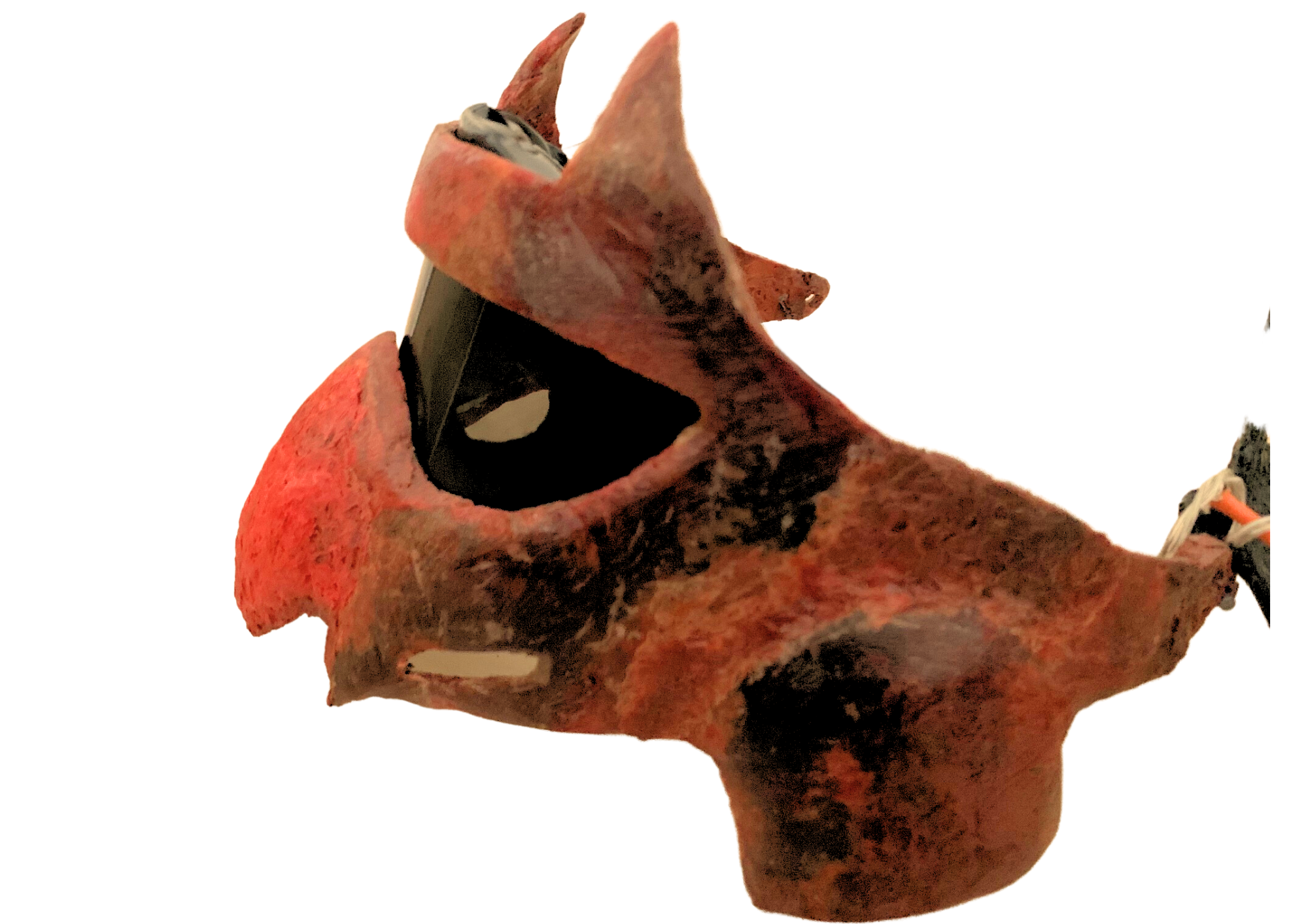 ベースは鬼顔を使いますが、動いて装着できる形であれば色も形も自由です。